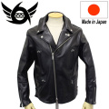 レザーウェアの定番人気モデル「LJM-1TF」のロング丈バージョンです。着丈を3cm長くすることで、サイドアジャスターのバックルが袖口と干渉するのを避けるためにバックル自体を後ろ身頃に移動してアジャストストラップを後方に向けて配しました。それに伴いこの箇所がデザインのポイントとなり、後ろ姿を引き立てます。