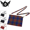 スクエア型のパイル生地とタータンチェック生地をそれぞれ使用したショルダー付き サコッシュ