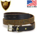 HTC(Hollywood Trading Company)Brand History1930~50年代に生産されていたスタッズベルト。今となっては年間数十本くらいでしか市場で出回らない希少なアイテム。1994年,独立後にオーナーである ZIP STEVENSON はデニムに最も似合うベルト、スタッズベルトに全米を巡るバイイングにより出会った。でも、サイズや量、程度など顧客の需要にはとても応えられるほど手に入れられるものではなかった。そこで彼は当時使われていた工具、ジュエリーをもとに打ち込み始めて1年、彼の納得のいく、70年間の月日を忘れさせられる手作り感のあるベルトに仕上げた。これがZIPとベルトのスタートである。それから5年後の2000年より、HOLLYWOOD TRADING COMPANY (HTC)として、世界各国に愛されるベルトブランドとして現在に至る。全米を見渡しても数少ない MADE IN USA をHTCは誇りとし、変わることのない手作り感をこの先も続けていく。