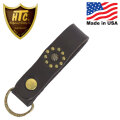 HTCオリジナルのDリングとレザーストラップを組み合わせたキーホルダーです。スタッズワークはアンブレラスタッズを組み合わせた定番のフラワーモチーフ。スタッズ、Dリングはヴィンテージ加工が施してあります。