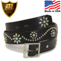 | 製品名 | HTC(Hollywood Trading Company) #125 1.25 Turquoise with End 1.25インチ ベルト ブラックレザーxニッケルスタッズxターコイズ |
