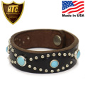 | 製品名 | HTC(Hollywood Trading Company) Bracelet #53 No Patch Turquoise 0.75インチ ブレスレット ブラックレザーxシルバースタッズxターコイズ |