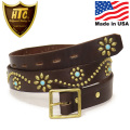 | 製品名 | HTC(Hollywood Trading Company) #125W 1.25 Turquoise with End 1.25インチ ベルト ダークブラウンレザーxブラススタッズxターコイズ |