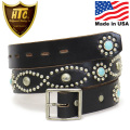 | 製品名 | HTC(Hollywood Trading Company) Belt #D-Style Studs Turquoise W/End 1.25 インチ ベルト ブラックレザーxシルバースタッズxターコイズ |
