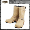| Wesco ウエスコ 一足のWESCOブーツは、ハンドクラフトによる155もの工程を経て造り上げられています。 型崩れを防ぎながら土踏まずを保護、足への負担を軽減するために、あえて製造に手間のかかる『スティールシャンク』を他のブーツメーカーに先駆けて採用しました。 過酷な環境に耐え抜くことの出来るヘビービューティーなレザーは、優れた耐久性を誇ります。 WESCOブーツは設立当初よりLoggerをはじめ、Lineman、Police Officer、Firefighterなど、タフな職業に従事する男たちの足元を支え続けています。これらの実績に裏打ちされた高い機能性、クオリティーは、他のワークブーツやファッションブーツの追随を許しません。 大量生産に走らず、ハイクォリティーをキープすることを最優先に考える姿勢は1918年より変わることがありません。そしてその頑な信念ものと、新しい挑戦も怠りません。その一例が、2003年にラインナップに加わったFirestormerです。246℃もの高温の中、40分にも及ぶ時間を耐え抜き、Firefighterの足元を支えた実績は、メディアにも大きく紹介されました。 カスタマーオリエンテッドの考えから、お客様個々の使用状況や趣味趣向にあわせ、一足からのカスタムオーダーが可能となっています。カスタムフィッティングはもちろんのこと、多岐にわたるカスタムメニューから、お客様に最適の一足をご提供することが可能になっているのもWESCOブーツの大きな特徴です。 正規ディーラーである当店のWESCOウエスコブーツには、1足に付き1枚のギャランティーカードが付属します。 このギャランティーで、初回のヒール交換を無料。初回の全ソール張替え5250円です。 当店WEBショップでご紹介するWescoブーツは、ほんの一例です。様々なカスタムをお受けできます。納期、カスタム料金は時期によりことなります。カスタムオーダーをご希望の場合はメールにてお問い合わせくださいませ。 BOSS ボス 現存する、世界最高峰のモーターサイクルブーツ、またはファッションブーツと言えるでしょう。 その無骨で頑丈な作りは、日本でも多くのモーターサイクリストを魅了しています。 革の色:Burlap バーラップ 表革&裏革 Toe(トゥー つま先):Bubble Toe Height(ハイト 高さ):10inch Sole(ソール):#430 バックル部:Nickle(シルバーカラー) Heel&Sole:インクなし ソール部ステッチ:ホワイト、その他のステッチ:ブラウン #430 sole:軽めのシルエットながらオイルレジスタント、グリップ力に優れたソール。軽快で操作性もよく、多くのモータサイクリストから支持されている。 |
