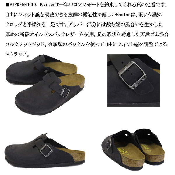 BIRKENSTOCK Bostonは一年中コンフォートを約束してくれる真の定番です。自由にフィット感を調整できる抜群の機能性が嬉しいBostonは、既に伝説のクロッグと呼ばれる一足です。アッパー部分には裁ち端の風合いを生かした厚めの高級オイルドヌバックレザーを使用。足の形状を考慮した天然ゴム混合コルクフットベッド。金属製のバックルを使って自由にフィット感を調整できるストラップ。