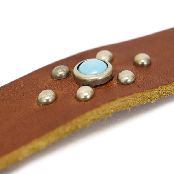 1inch幅のベースに人気のターコイズを組み合わせた定番モチーフのスタッズワークでシンプルに仕上げました。