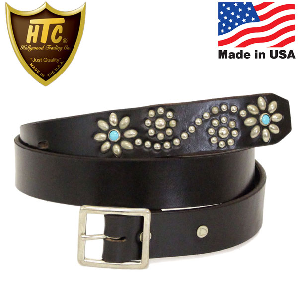 正規取扱店 HTC(Hollywood Trading Company) END ONLY #125 LG 1.25インチ ベルト ブラックレザーxシルバースタッズxターコイズ